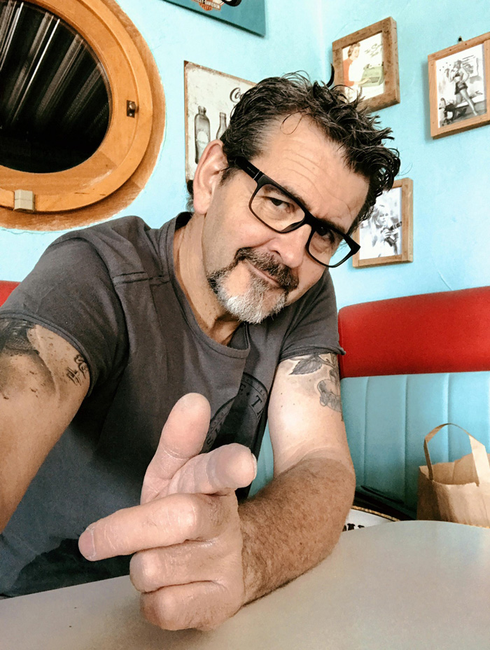 Born in Paris in 1960, he first found his inspiration in American magazines, with enough talent to customize the guitars of great rockers and become the main preparator of Harley Davidson motorcycles: his unique paintings and original creations became his signature.